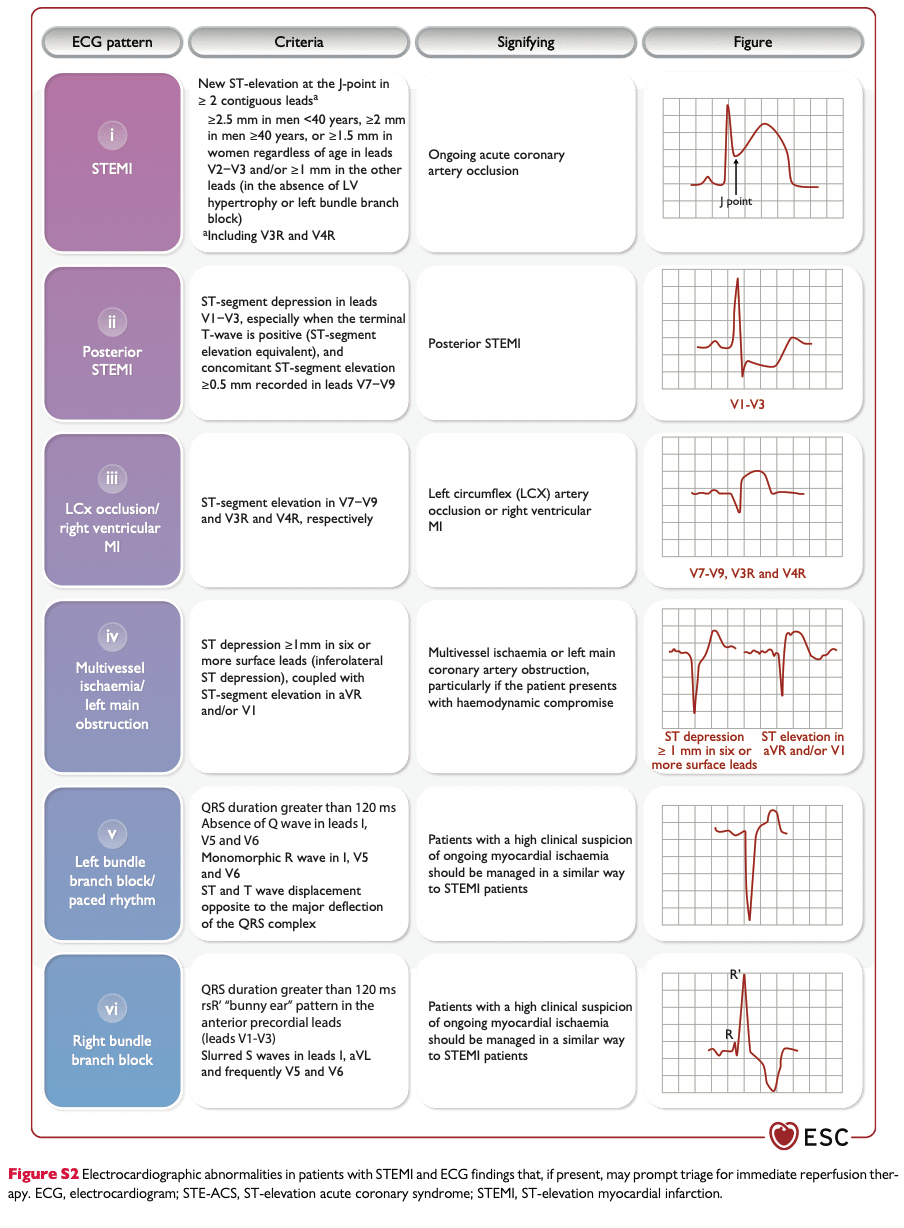 - Borja Ibanez, Stefan James, Stefan Agewall, et al:, ESC Scientific Document Group, 2017 ESC Guidelines for the management of acute myocardial infarction in patients presenting with ST-segment elevation: The Task Force for the management of acute myocardial infarction in patients presenting with ST-segment elevation of the European Society of Cardiology (ESC), European Heart Journal, Volume 39, Issue 2, 07 January 2018, Pages 119–177, https://doi.org/10.1093/eurheartj/ehx393 [↩]