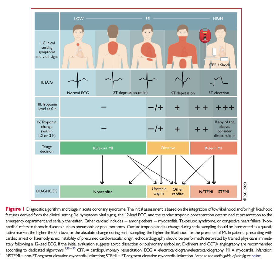 Diagnostisk algoritm och triage vid misstänkt AKS (2023 ESC Guidelines for the management of acute coronary syndromes 7 )